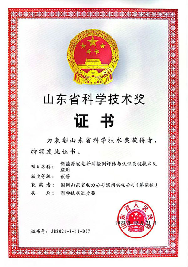 本網(wǎng)訊 7月1日,筆者從《山東省人民政府關(guān)于2021年度山東省科學(xué)技術(shù)獎勵的決定》上了解到,濱州公司參與申報的《新能源發(fā)電并網(wǎng)檢測評估與認(rèn)證關(guān)鍵技術(shù)研究及應(yīng)用》項目榮獲2021年度山東省科學(xué)技術(shù)獎科技進(jìn)步二等獎。這是濱州公司首次獲得山東省科學(xué)技術(shù)獎。