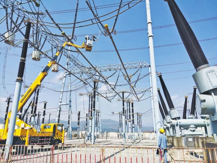 工作人員對220千伏草鋪變電站隱患母線進行更換。 盧顯侖 攝