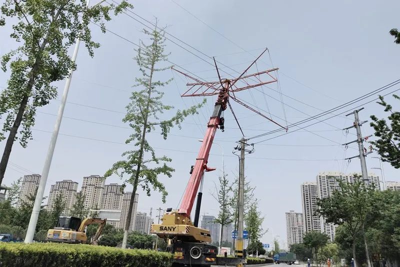 國網(wǎng)湖北鄂州供電公司在110千伏架空線路遷改工程中應(yīng)用移動(dòng)式傘形跨越架