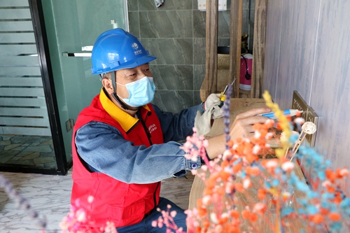 “還好你們提前過來給我們檢查了,這間房的插座和熱水器都沒電,你們給幫忙修一修。”說完該公司黨員服務(wù)隊便拿出來工具開始“修”,不一會兒,熱水器便開始燒水了。“我這里的房間現(xiàn)在基本上已經(jīng)被預(yù)定了,多虧你們來檢查用電了。” 緣居客棧負責(zé)人看著正在更換插座的黨員服務(wù)隊隊員感激地說道。