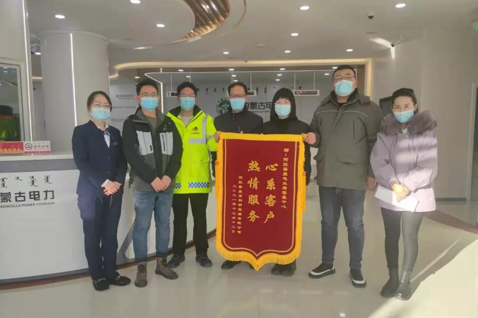 12月13日,內(nèi)蒙古高科新能源有限公司分散式風(fēng)力發(fā)電項(xiàng)目并網(wǎng)用電負(fù)責(zé)人將一面寫有“心系客戶 熱情服務(wù)”的錦旗送到客戶服務(wù)中心。