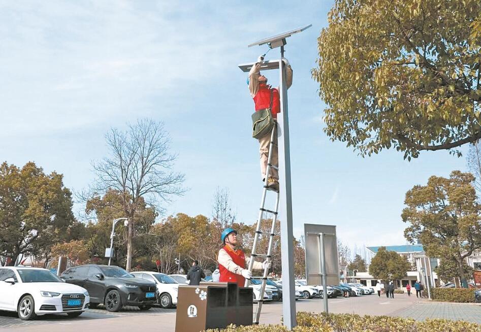 黨員服務(wù)隊(duì)隊(duì)員來到位于淮安市淮安區(qū)的周恩來紀(jì)念館,檢修停車場的光伏路燈。