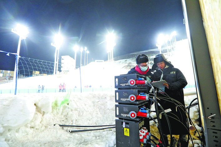 盡管有著嚴格的流程,供電保障團隊還要不時應對各種突發(fā)情況。雪上競賽的一大特點是變化多——受氣溫、風力等因素影響,測試活動時間隨時可能改變。原定于19時舉行的雪上技巧測試活動最終因大風推遲,提前兩小時到位的值守人員原地等待,在活動結束后1小時確認保電任務完成,再從賽道撤離。