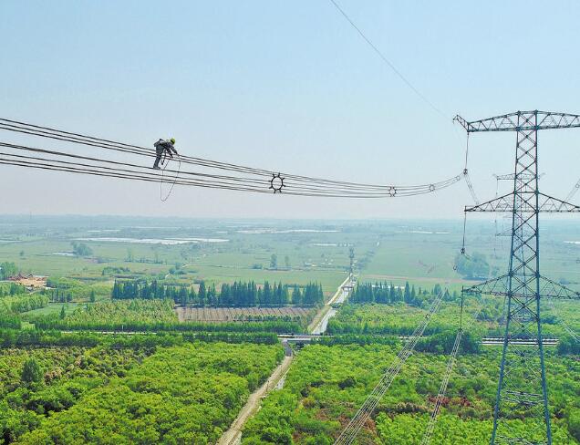 五月的江淮大地,綠意正濃。一座座巍峨的鐵塔串聯(lián)起銀線,從嚴(yán)店鄉(xiāng)的田野上方向遠(yuǎn)方延伸。“1000千伏淮蕪線是淮南—南京—上海特高壓交流輸變電工程的重要組成部分,是名副其實(shí)的長(zhǎng)三角能源大動(dòng)脈。”合肥供電公司輸電運(yùn)檢中心員工萬(wàn)能介紹,該線路橫跨安徽、江蘇、上海三省市,將電能從淮南源源不斷輸送至上海。