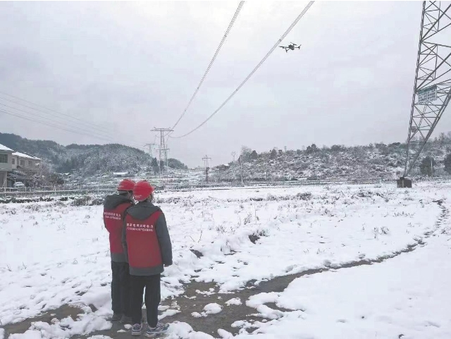 國(guó)網(wǎng)湖南電力員工開(kāi)展無(wú)人機(jī)自適應(yīng)巡檢,完成防凍融冰保電工作任務(wù)。國(guó)網(wǎng)湖南電力供圖