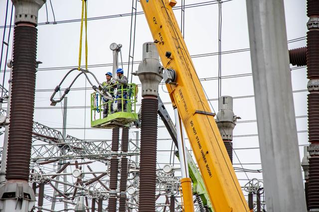 3月18日,在500千伏濉溪變電站,國網(wǎng)淮北供電公司職工對(duì)該變電站的主變等設(shè)備開展綜合檢修。