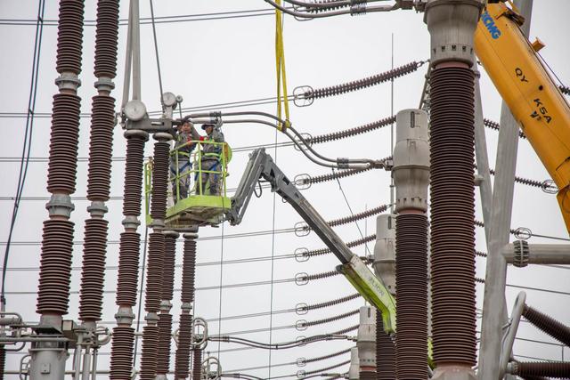 國網(wǎng)淮北供電公司職工對(duì)500千伏濉溪變電站的電流互感器開展綜合檢修。王磊攝