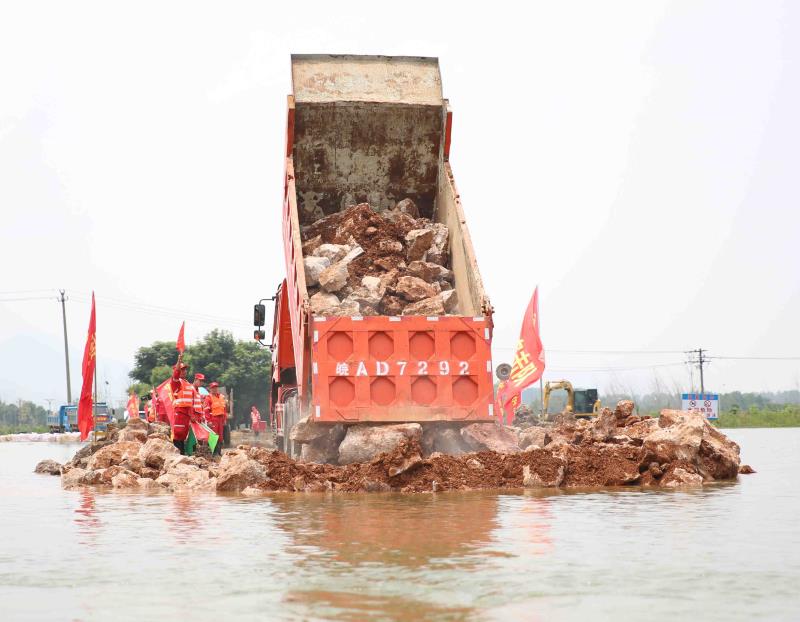 中國安能搶險隊員采取“單戧進占,搶占裹頭,加固子堤,防滲護坡”的戰(zhàn)法,克服連日作戰(zhàn)、地滑路遠、道路狹窄等困難,持續(xù)守在圩口進行封堵作業(yè),21時16分,伴隨著最后一斗土石推入決口,經(jīng)過21小時的持續(xù)奮戰(zhàn),50米的缺口順利合攏。缺口合龍后,中國安能搶險隊員還將繼續(xù)組織對缺口位置進行防滲處理和加固作業(yè),對圩堤整體進行加高50公分,提升堤防防洪能力。