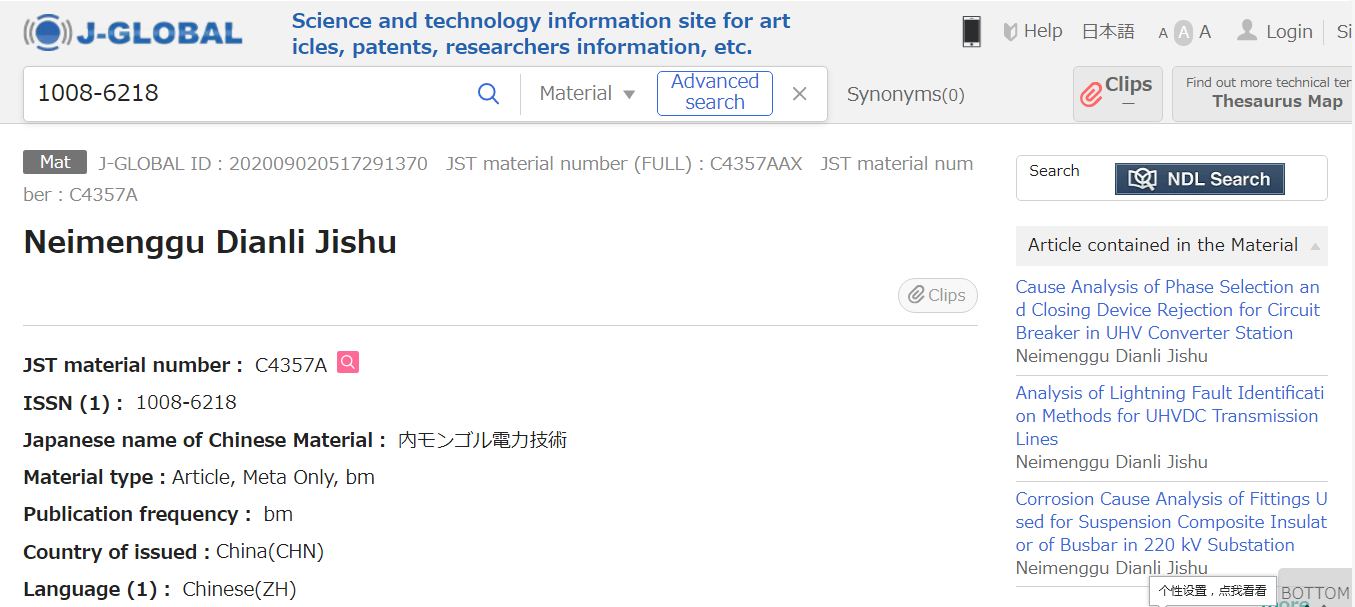 中國電力網(wǎng)訊 近日,由內(nèi)蒙古電力(集團)有限責任公司主管、內(nèi)蒙古電力科學研究院和內(nèi)蒙古自治區(qū)電機工程學會主辦的學術(shù)期刊《內(nèi)蒙古電力技術(shù)》被世界知名檢索系統(tǒng)日本科學技術(shù)振興機構(gòu)(,JST)數(shù)據(jù)庫收錄為來源期刊。