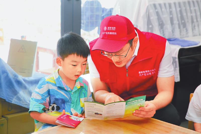 在四川廣安,國(guó)網(wǎng)四川電力共產(chǎn)黨員服務(wù)隊(duì)隊(duì)員走進(jìn)幼兒園,宣傳節(jié)約用電。王西米 攝