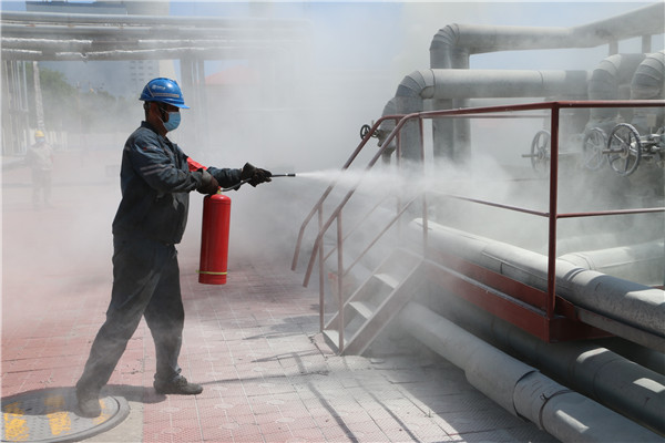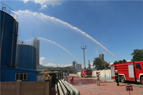 消防隊接到報警后立即出動消防車趕往火災現(xiàn)場進行滅火,同時聯(lián)系化廠消防隊支援。各應急組到達現(xiàn)場后,緊張有序的開展應急救援。經(jīng)過協(xié)同作戰(zhàn),燃油罐區(qū)明火已經(jīng)撲滅,消防人員正在清理現(xiàn)場,防止復燃,無其他設備、人員不安全事件。至此演練結束,高金鍇宣布應急響應結束,關閉應急預案。
