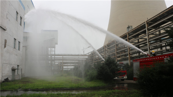 9時(shí),各參演單位集結(jié)完畢,副廠長(zhǎng)宣布“大唐長(zhǎng)山熱電廠輸煤系統(tǒng)火災(zāi)演練”開始。本次演練假想為燃運(yùn)分場(chǎng)運(yùn)行人員巡視檢查中發(fā)現(xiàn)1號(hào)機(jī)組輸煤4段尾部皮帶積粉燃燒,輸煤皮帶冒煙著火,運(yùn)行人員發(fā)現(xiàn)火情后立即匯報(bào)集控班長(zhǎng)并就地使用滅火器進(jìn)行撲救,集控班長(zhǎng)接到報(bào)告后立即撥打火警電話告知火災(zāi)地點(diǎn),同時(shí)報(bào)告值長(zhǎng)和燃運(yùn)分場(chǎng)主任,并組織集控值班員趕往火災(zāi)地點(diǎn)進(jìn)行撲救。值長(zhǎng)立即向演練總指揮報(bào)告,并按要求做好機(jī)組調(diào)整工作??傊笓]下達(dá)啟動(dòng)輸煤皮帶火災(zāi)應(yīng)急預(yù)案,成立現(xiàn)場(chǎng)指揮部,全力撲救火情,保障人身安全和機(jī)組穩(wěn)定運(yùn)行。值長(zhǎng)迅速通過生產(chǎn)溝通群向各應(yīng)急組發(fā)布應(yīng)急預(yù)案啟動(dòng)命令,告知火情信息。廠消防隊(duì)和長(zhǎng)山化廠消防車到達(dá)火災(zāi)現(xiàn)場(chǎng),消防戰(zhàn)士開始撲救火災(zāi),9時(shí)11分火情得到控制,廠消防隊(duì)隊(duì)長(zhǎng)報(bào)告輸煤皮帶明火已經(jīng)撲滅,消防人員正在清理現(xiàn)場(chǎng),防止死灰復(fù)燃,至此演練結(jié)束。李云龍宣布應(yīng)急響應(yīng)結(jié)束,關(guān)閉應(yīng)急預(yù)案。