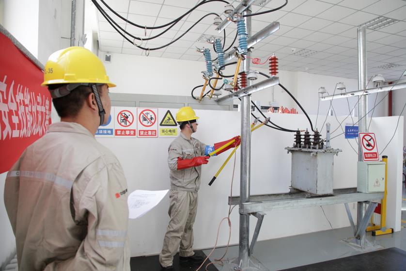 第一項(xiàng)是停送電倒閘操作,評(píng)分方式為裁判組打分。參賽選手兩人一組,一人填寫(xiě)停電操作票、另一人填寫(xiě)送電操作票,分別擔(dān)任操作人、監(jiān)護(hù)人;安全防護(hù)用品、安全工器具設(shè)置了過(guò)期標(biāo)簽,檢驗(yàn)參賽選手是否能正確使用;實(shí)際操作過(guò)程中的違章作為扣分項(xiàng)。