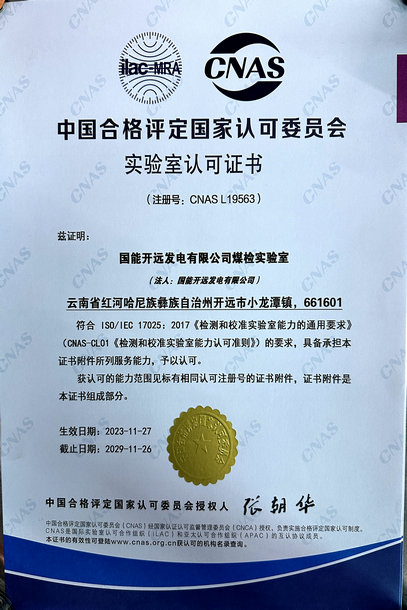 中國電力網(wǎng)訊 (通訊員 王如鵬)12月3日,國能開遠公司收到中國合格評定國家認可委員會(CNAS)授予的煤檢實驗室認可證書,標志著該公司可在認可范圍內(nèi)使用CNAS國家實驗室認可標識和ILAC-MRA國際互認聯(lián)合標識,煤檢驗能力達到國家級實驗室水平。