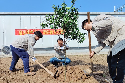 3月12日一大早,天氣明媚,電站準(zhǔn)備好鐵鏟、肥料及石榴樹(shù)、金錢(qián)橘樹(shù)、甜橙樹(shù)等九棵樹(shù)苗,在電站二次設(shè)備倉(cāng)與圍墻之間的空地上開(kāi)始忙活起來(lái)。大家劃分種植區(qū)域,分工合作,開(kāi)始挖樹(shù)坑。當(dāng)鐵鍬一鏟一鏟地鏟向大地時(shí),泥土的氣息迎面而來(lái),沁人心脾;飛舞的鐵鍬和掀飛的土塊,是歡快跳動(dòng)的五音符;揮灑的汗珠化作甘露滋潤(rùn)著大地……
