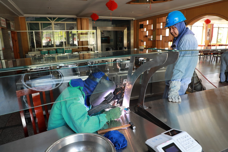 中國電力網(wǎng)訊 4月26日,天氣炎熱,而費海濤正用鋼鐵裁縫師的巧手將不銹鋼玻璃食品罩安裝完畢,使職工食堂新的炊具用品投入使用。陽宗海公司將黨史學(xué)習(xí)教育與為群眾辦實事緊密結(jié)合,以黨員為主體,引導(dǎo)廣大黨員廣泛學(xué)、深入悟,從黨史中汲取奮進力量,增強“我為群眾辦實事”的思想自覺和行動自覺。