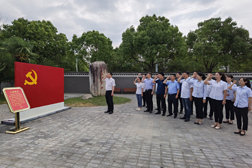 “我志愿加入中國(guó)共產(chǎn)黨,擁護(hù)黨的綱領(lǐng),遵守黨的章程,履行黨員義務(wù)……”在簡(jiǎn)樸肅穆的總前委舊址前,全體黨員面向鮮紅的黨旗,舉起右拳、莊嚴(yán)宣誓,重溫入黨誓詞,鏗鏘有力的誓詞堅(jiān)定表示著聽黨話、跟黨走、對(duì)黨忠誠(chéng)的決心。