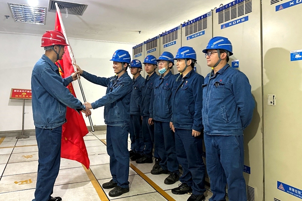 中國電力網(wǎng)訊 (通訊員 許飛龍)3月25日,在1號機(jī)組DCS工程師站,陜煤石門控制黨支部書記為1號機(jī)組DCS系統(tǒng)A級檢修項(xiàng)目舉行黨員突擊隊(duì)授旗儀式。
