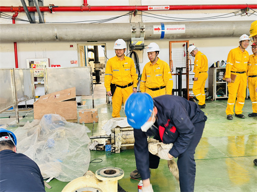 檢修現(xiàn)場,龍勁強對透空機檢修項目的方案措施、安健環(huán)管控、人員組織情況等重點工作進行了全面檢查,從項目現(xiàn)場安全文明施工、技術(shù)質(zhì)量管理等進行了指導(dǎo),結(jié)合現(xiàn)場實際強調(diào):一是要加強黨建引領(lǐng),增強責(zé)任擔(dān)當(dāng),充分發(fā)揮黨支部的戰(zhàn)斗堡壘作用;二是加強檢修現(xiàn)場安健環(huán)管理,強化安全職責(zé)落實;三是要提升質(zhì)量管理,高質(zhì)量完成透空機的檢修工作,全面提升透空機系統(tǒng)的經(jīng)濟運行和節(jié)能降耗水平。