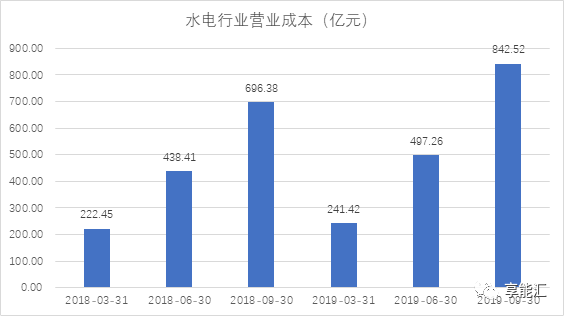 受季節(jié)性水流的影響,第三季度水電出力放緩,第三季度發(fā)電量同比增長增速降低,增速為2.5%。第一季度和第二季度增速均保持在在十幾個(gè)百分點(diǎn)的增速。在行業(yè)收入方面,第三季度水電行業(yè)凈利潤為414.21億元,其中歸屬于母公司的凈利潤為365.47億元,歸屬母公司凈利潤同比增長率為11.6%。前三季度水電行業(yè)營業(yè)成本為842.52億元,前三季度營業(yè)成本同比增長21%。