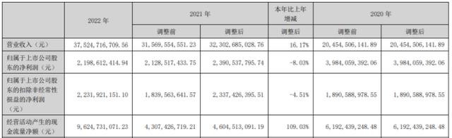 報(bào)告期內(nèi)經(jīng)營活動(dòng)產(chǎn)生的現(xiàn)金流量?jī)纛~為9,624,731,071.23元,歸屬于上市公司股東的凈資產(chǎn)46,195,143,246.09元。