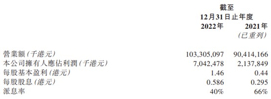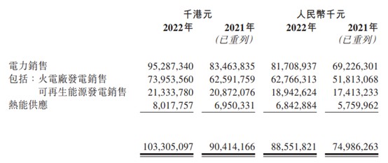 從基本面上來看,華潤電力是業(yè)內(nèi)少有的,在2022年內(nèi)實現(xiàn)收入和利潤均正向增長的企業(yè)。年內(nèi),公司實現(xiàn)營業(yè)收入1033.05億港元,同比增加14.3%,主要因火電不含稅平均上網(wǎng)電價同比上升20.2%,附屬電廠售電量同比增加4.1%;及附屬電廠不含稅平均售熱單價/售熱量同比增加13.8%/6.4%所驅(qū)動。其中,2022下半年,其收入同比增長11.1%,環(huán)比增長4.9%至529億港元。