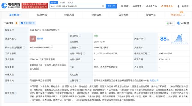 近日,吉遠(yuǎn)(四平)綠色能源有限公司成立,法定代表人為靳榮輝,注冊(cè)資本1億人民幣,經(jīng)營范圍含生物質(zhì)能技術(shù)服務(wù)、新興能源技術(shù)研發(fā)、風(fēng)力發(fā)電技術(shù)服務(wù)、太陽能發(fā)電技術(shù)服務(wù)、儲(chǔ)能技術(shù)服務(wù)等。股權(quán)全景穿透圖顯示,該公司由上海吉遠(yuǎn)綠色能源有限公司全資持股,后者由吉電股份(000875)、中遠(yuǎn)海運(yùn)國際(香港)有限公司、上港集團(tuán)能源(上海)有限公司共同持股。