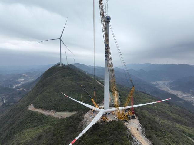 華電石柱萬寶二期項目風機葉片吊裝 華電重慶公司供圖