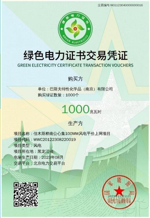 龍源電力高效推進綠證應(yīng)領(lǐng)盡領(lǐng),全力支持集團全產(chǎn)業(yè)100%綠電消費工作,所屬碳資產(chǎn)公司在集團電力營銷公司的組織、指導(dǎo)下,積極配合推動本次綠證核發(fā)交易,與主管機構(gòu)審核要求對標(biāo)看齊,按核發(fā)時間節(jié)點倒排工期,統(tǒng)籌交易方報價需求、合同簽署,最終促成樺南公心集100兆瓦風(fēng)電項目與德國巴斯夫特性化學(xué)品(南京)有限公司綠證劃轉(zhuǎn)交易,獲得全國首張綠色電力證書交易憑證。