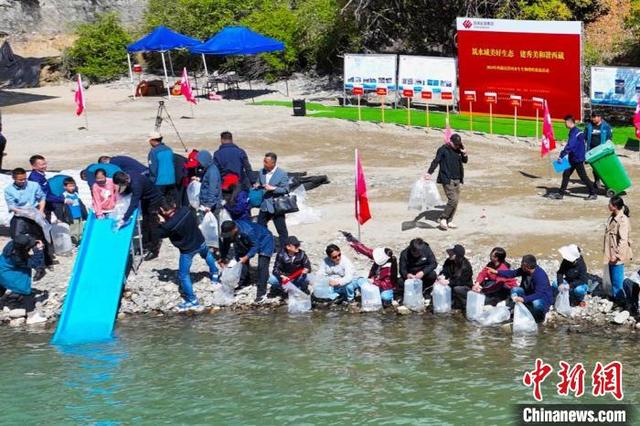圖為6月6日,西藏林芝尼洋河魚苗放流現(xiàn)場。國家能源集團(tuán)西藏公司 供圖