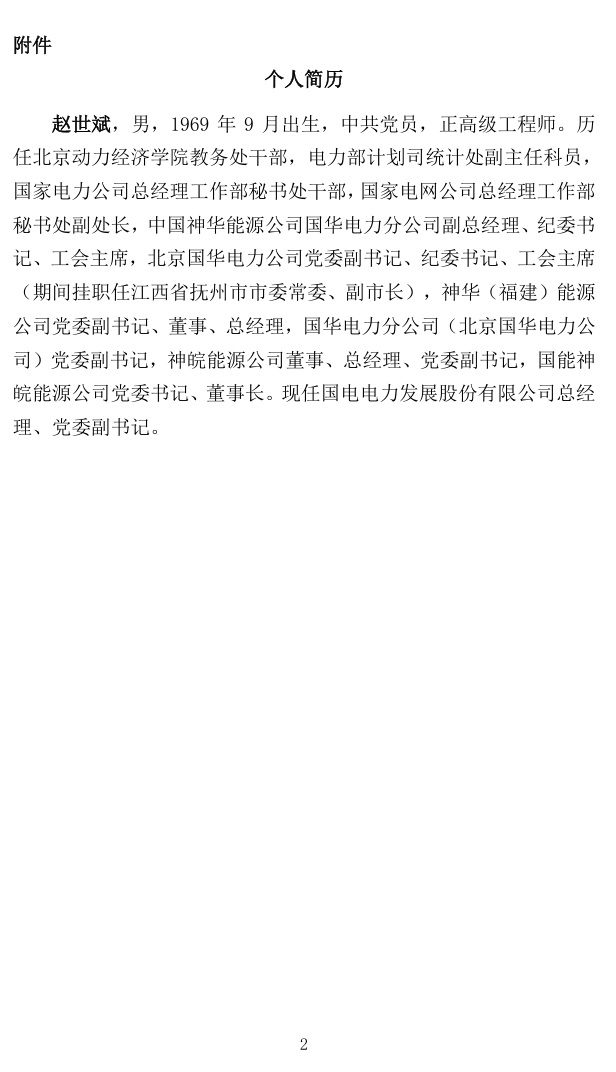 國(guó)電電力發(fā)展股份有限公司(以下簡(jiǎn)稱“國(guó)電電力”)董事會(huì)同意聘任趙世斌為公司總經(jīng)理。