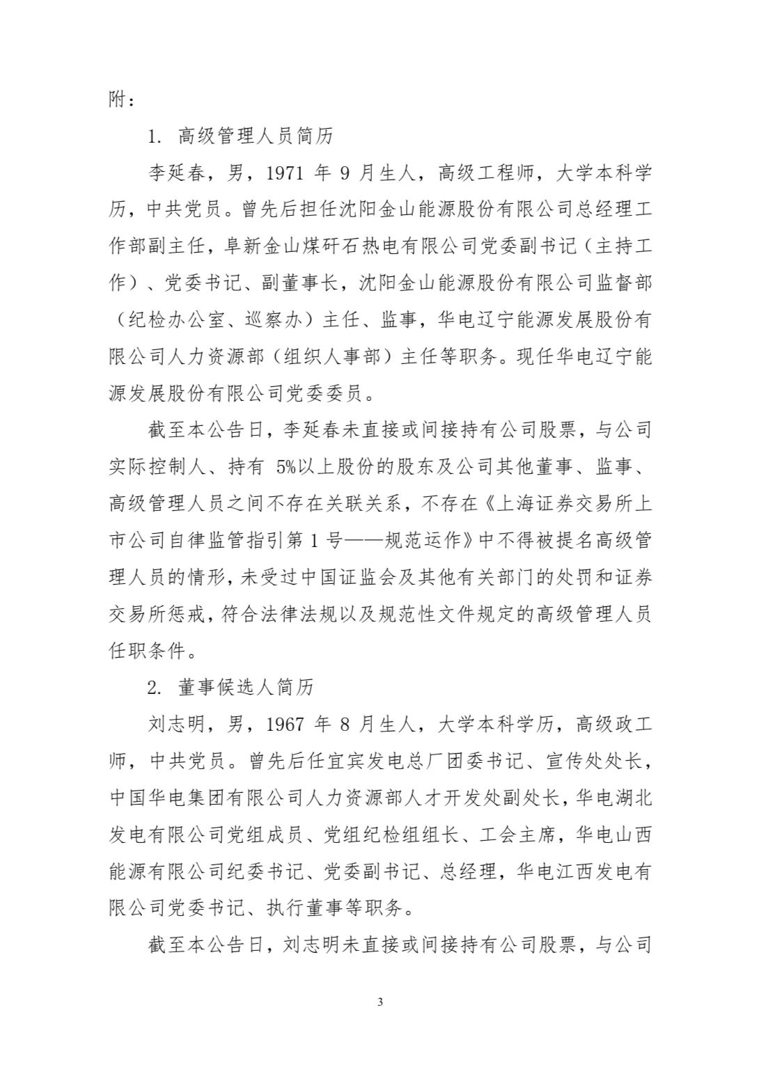 李延春任華電遼寧能源發(fā)展股份有限公司(以下簡(jiǎn)稱“華電遼能”)副總經(jīng)理。劉志明為華電遼能董事。