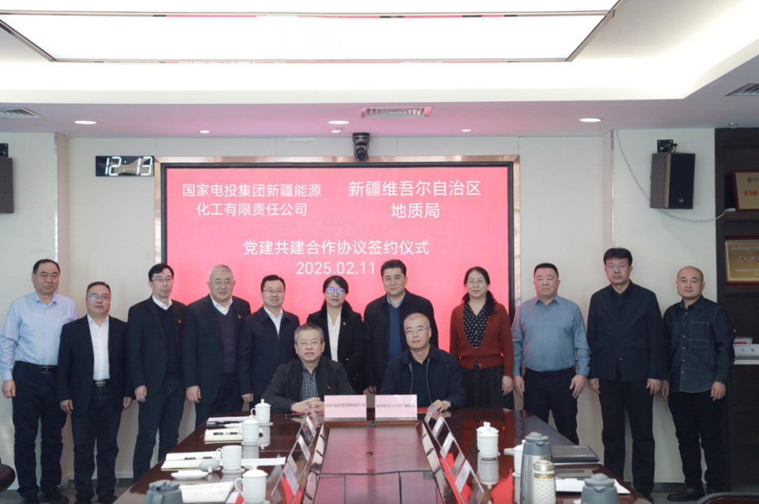 2月11日,國家電投新疆公司黨委副書記(主持工作)、董事(法定代表人、代行董事長職責)張瑋在本部與自治區(qū)地質局黨組書記、副局長黃雪偉會談,就進一步深化政企合作進行交流,并見簽雙方《戰(zhàn)略合作框架協(xié)議》《黨建共建合作協(xié)議》。自治區(qū)地質局黨組成員、副局長薛洪偉,公司黨委副書記、工會主席柴玉軍和黨委委員、副總經理杜偉參加座談并代表雙方簽約。