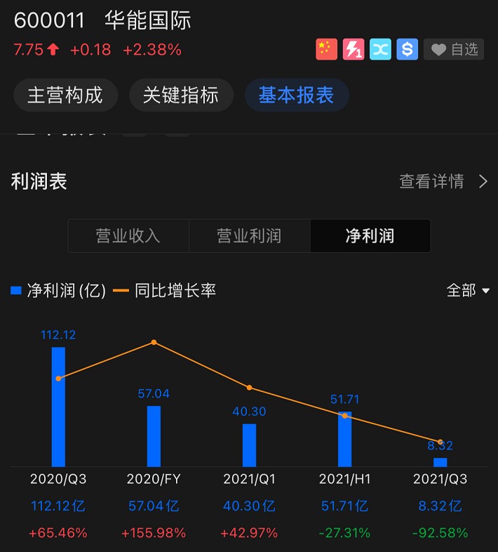 以華能國際為例,預測全年業(yè)績有可能是虧損。