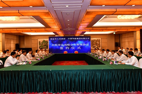 本網(wǎng)訊 7月18日,中國華能集團(tuán)有限公司與保定市人民政府戰(zhàn)略合作框架協(xié)議簽約儀式在保定舉行。集團(tuán)公司總經(jīng)理、黨組副書記鄧建玲,副總經(jīng)理李向良,保定市委書記黨曉龍,保定市委副書記、市長閆繼紅出席活動。鄧建玲、黨曉龍?jiān)趦x式上致辭,李向良、閆繼紅分別代表雙方在協(xié)議書上簽字。