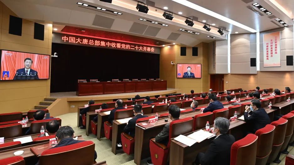 中國(guó)大唐黨員干部群眾早早端坐在屏幕前,懷著激動(dòng)的心情,收聽(tīng)收看黨的二十大開(kāi)幕會(huì),認(rèn)真聆聽(tīng)習(xí)近平總書(shū)記所作的報(bào)告。集團(tuán)公司領(lǐng)導(dǎo)劉明勝、時(shí)家林、王瑛、曲波、張傳江、彭勇、陶云鵬和總部副經(jīng)理級(jí)及以上干部分別在總部3個(gè)會(huì)場(chǎng),系統(tǒng)31991名黨員干部職工在全國(guó)1873個(gè)會(huì)場(chǎng)集中收看開(kāi)幕會(huì)盛況。