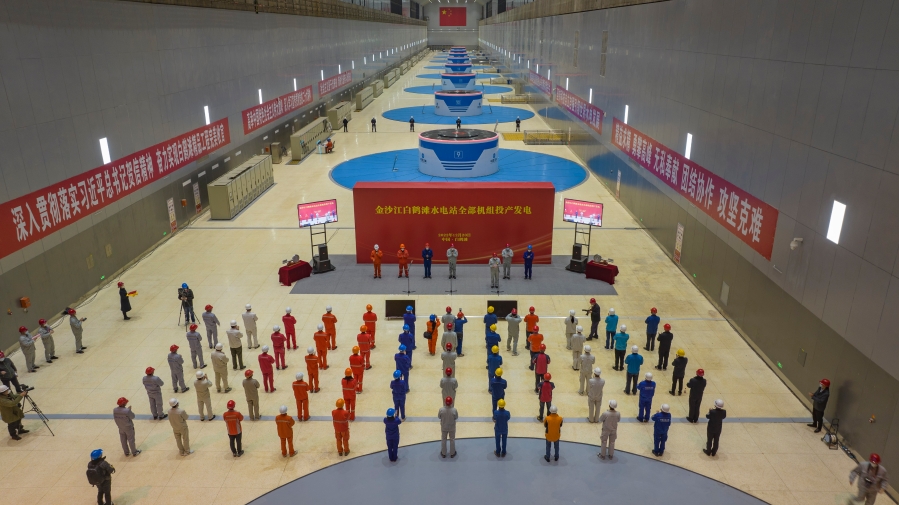本網(wǎng)訊(謝澤)12月20日8時50分,隨著9號機組正式并網(wǎng)運行,在建規(guī)模世界第一、裝機規(guī)模全球第二的金沙江白鶴灘水電站16臺百萬千瓦機組全部投產(chǎn)發(fā)電,這標(biāo)志著我國在長江之上全面建成世界最大清潔能源走廊。當(dāng)日,全部機組投產(chǎn)發(fā)電儀式在白鶴灘水電站右岸廠房舉行,三峽集團董事長、黨組書記雷鳴山致辭并宣布全部機組投產(chǎn)發(fā)電,國家能源局云南監(jiān)管辦公室黨組書記、監(jiān)管專員郝瑞鋒,國家電網(wǎng)副總經(jīng)理、黨組成員陳國平,哈電集團董事長、黨委書記曹志安,東方電氣黨組副書記宋致遠(yuǎn),一重集團副總經(jīng)理、黨委常委關(guān)永昌在視頻分會場出席儀式并致辭。