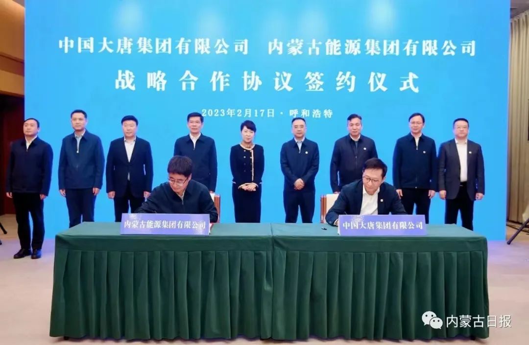 會見前,中國大唐集團(tuán)有限公司分別與內(nèi)蒙古自治區(qū)人民政府、內(nèi)蒙古能源集團(tuán)有限公司簽署戰(zhàn)略合作協(xié)議。王莉霞和鄒磊出席儀式并見證戰(zhàn)略合作協(xié)議簽約,共同為大唐內(nèi)蒙古能源開發(fā)有限公司揭牌。