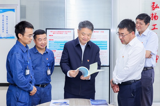 在江蘇公司,溫樞剛一行先后來到江蘇公司本部、清能分公司、綜合能源公司、南京燃機電廠、金陵電廠,親切慰問一線員工,深入調(diào)研江蘇清能集控中心、新能源智慧能源平臺、綜合能源光伏監(jiān)管中心和應(yīng)急指揮中心,南京燃機電廠黃慶工匠工作室、燃機大數(shù)據(jù)中心、仿真機中心、燃機部件展示室,金陵電廠運行集控室、職工創(chuàng)新工作室,詳細了解江蘇公司海上風(fēng)電生產(chǎn)運營、設(shè)備管理、科技創(chuàng)新、光伏建設(shè)與運維、綜合能源服務(wù)以及精益化管理平臺、非補燃壓縮空氣儲能電站運行等情況。