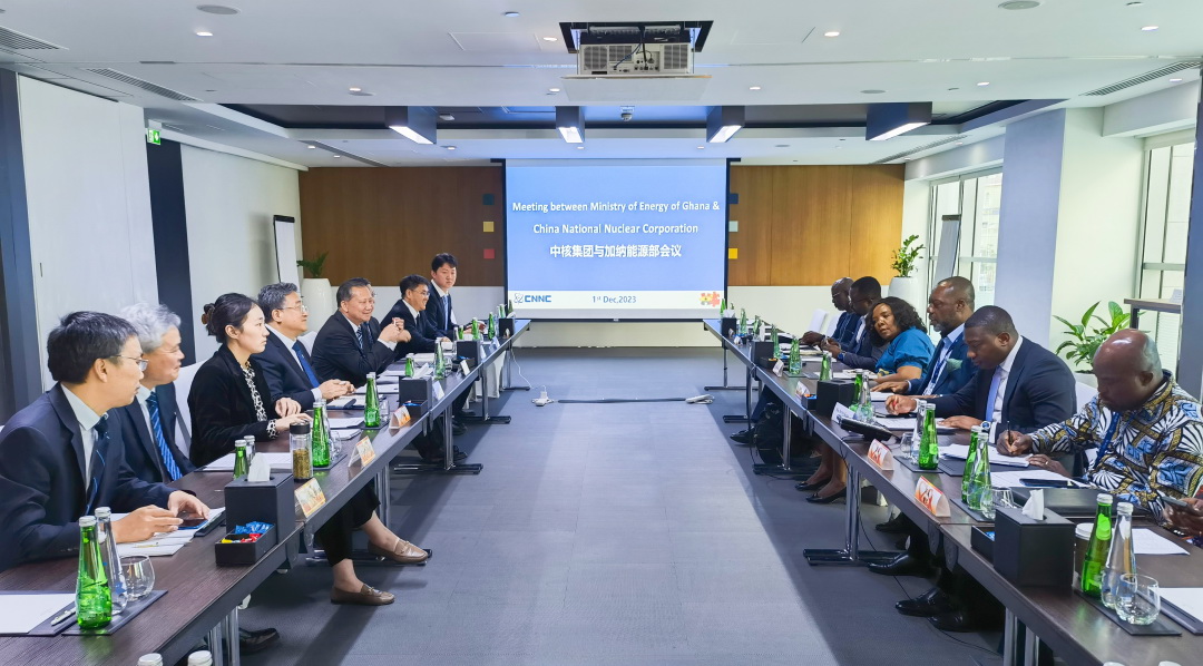 為進(jìn)一步推動核能國際合作,促進(jìn)核能在應(yīng)對氣候變化中發(fā)揮更大作用,11月30日至12月1日第28屆聯(lián)合國氣候變化大會(COP28)期間,中核集團(tuán)董事長余劍鋒率團(tuán)出訪阿聯(lián)酋,與阿聯(lián)酋核能公司董事總經(jīng)理兼總裁哈馬迪舉行會談,雙方簽署了第三國核能聯(lián)合開發(fā)與投資的諒解備忘錄。訪阿期間,余劍鋒還應(yīng)約會見了世界核協(xié)會總干事萊昂、加納能源部長普倫佩,就進(jìn)一步深化合作達(dá)成共識。