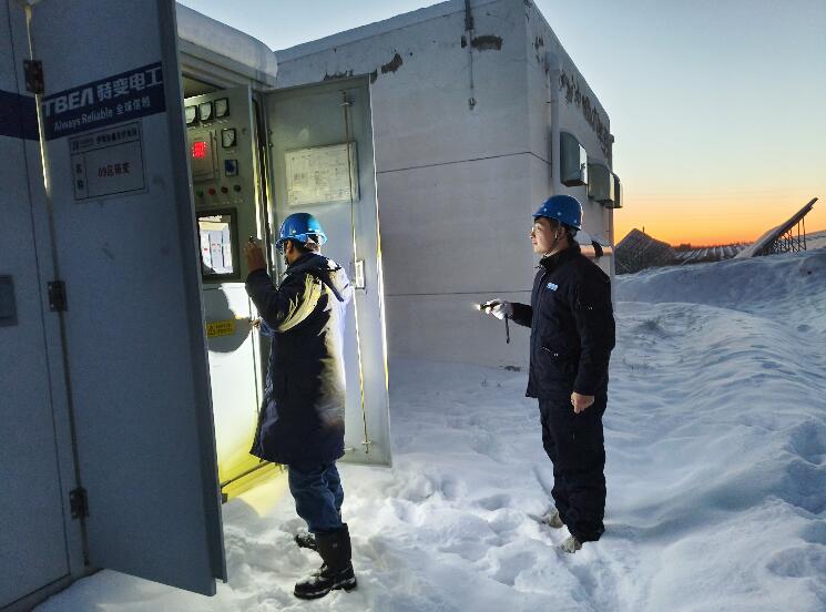 在西北部地區(qū),新疆伊犁地區(qū)日前遭遇連續(xù)降雪,華能伊犁光伏電站地處山區(qū),現(xiàn)場積雪最深處達(dá)50公分。場站立即啟動防寒防凍應(yīng)急預(yù)案,重點(diǎn)對匯流箱、箱變、逆變器、光伏板凝凍情況等進(jìn)行仔細(xì)檢查,增加巡檢次數(shù)和動態(tài)跟蹤;及時清除組件積雪,加強(qiáng)應(yīng)急值班管理,持續(xù)做好運(yùn)行監(jiān)控分析和重點(diǎn)設(shè)備專項(xiàng)檢查工作,確保電力生產(chǎn)設(shè)備始終處于最佳運(yùn)行狀態(tài),保障關(guān)鍵時刻設(shè)備安全穩(wěn)定供電。
