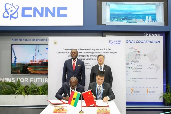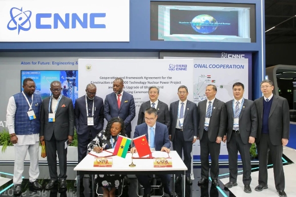 IAEA總干事拉斐爾·格羅西,世界能源理事會CEO安吉拉,WNA總干事薩瑪·萊昂,加納能源部長馬修·普倫佩,馬拉維能源部長易卜拉欣·馬托拉,法國原委會副主席皮凱蒂,加拿大核協(xié)會主席約翰·戈?duì)柭▏娏径麻L呂克·雷蒙,國家能源局總經(jīng)濟(jì)師魯俊嶺、科技部中國國際核聚變能源計(jì)劃執(zhí)行中心副主任王敏、中國電力聯(lián)合會理事長辛保安等中外領(lǐng)導(dǎo)嘉賓參觀了展臺。展會期間,中核集團(tuán)與加納能源部、法國電力集團(tuán)等重要合作伙伴進(jìn)行了雙邊會談。中國中原與加納核電公司簽署了核電項(xiàng)目合作框架協(xié)議。