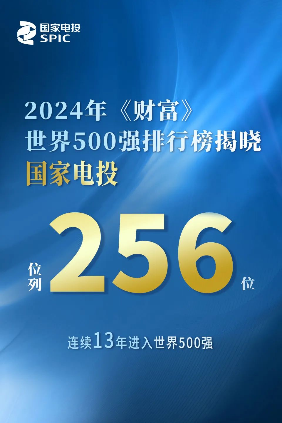 2024年《財(cái)富》世界500強(qiáng)排行榜揭曉,國(guó)家電投位列第256位,連續(xù)13年進(jìn)入世界500強(qiáng)。