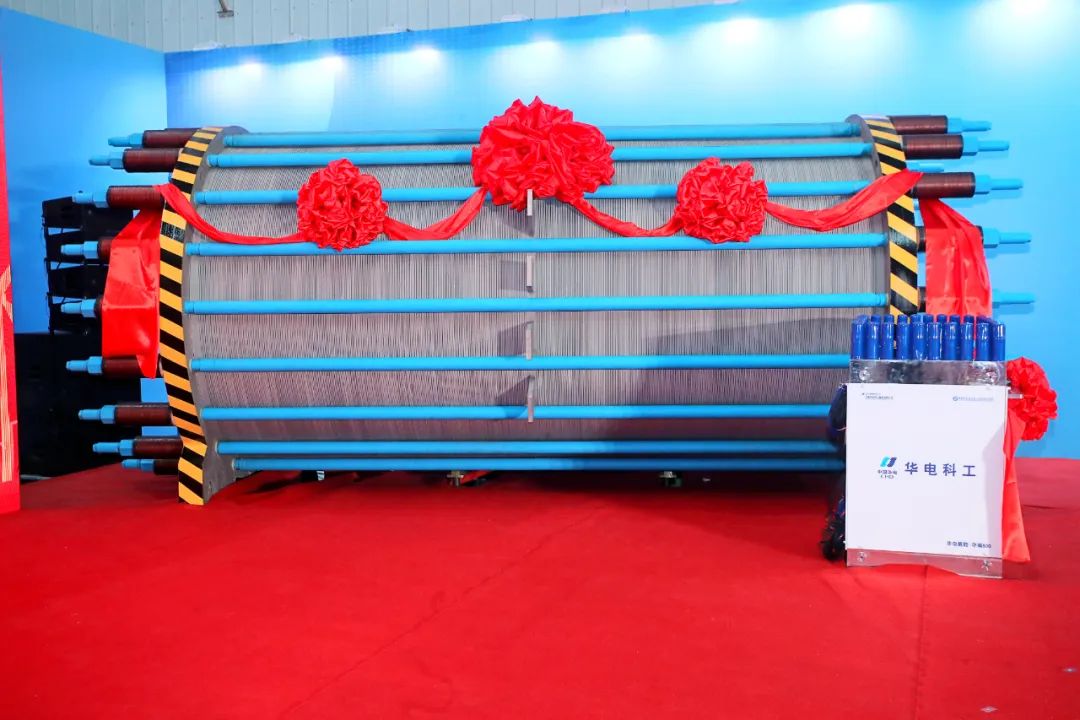 1月3日,由中國(guó)華電所屬中國(guó)華電科工集團(tuán)有限公司自主研發(fā)的3300標(biāo)方堿性電解槽及與中國(guó)科學(xué)院聯(lián)合開(kāi)發(fā)的500標(biāo)方PEM電解槽正式下線、2.5兆瓦PEM電解槽實(shí)證平臺(tái)投用,標(biāo)志我國(guó)可再生能源電解水制氫裝備實(shí)現(xiàn)新突破,對(duì)加快構(gòu)建新型能源體系、實(shí)現(xiàn)“雙碳”目標(biāo)具有重要意義。中國(guó)工程院院士彭蘇萍,加拿大工程院院士深圳技術(shù)大學(xué)未來(lái)技術(shù)學(xué)院院長(zhǎng)劉清俠,天津市北辰區(qū)委書(shū)記倪斌,區(qū)委副書(shū)記、區(qū)長(zhǎng)徐暉,區(qū)委副書(shū)記閆峰,副區(qū)長(zhǎng)、開(kāi)發(fā)區(qū)黨工委書(shū)記(兼)李維東,集團(tuán)公司戰(zhàn)略規(guī)劃部總監(jiān)吳韶華、科技信息部副主任張宇龍,公司黨委書(shū)記、董事長(zhǎng)彭剛平,黨委委員、副總經(jīng)理、總工程師李建標(biāo)出席活動(dòng)。