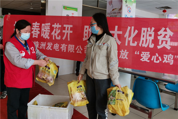 中國電力網(wǎng)訊 近日,大唐華銀株洲發(fā)電有限公司認(rèn)購大唐集團(tuán)公司定點(diǎn)扶貧縣——廣西自治區(qū)大化縣受疫情影響而滯銷的雞708只,并發(fā)放給員工。