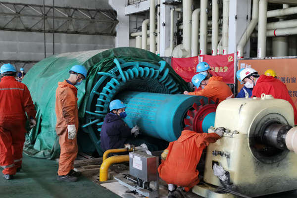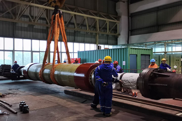 下午14時10分,隨著起重指揮人員的一聲哨響,發(fā)電機(jī)抽轉(zhuǎn)子工作正式開始,抽出期間,各專業(yè)人員分工有序,密切配合,時刻注意轉(zhuǎn)子與定子的間隙,及時調(diào)整轉(zhuǎn)子的移出量和中心位置,每一步都做到精益求精。整個抽出過程中,公司副總經(jīng)理張旭耀攜各部門負(fù)責(zé)人、專工現(xiàn)場監(jiān)督、指導(dǎo),隨時協(xié)調(diào)工作中可能出現(xiàn)的問題,為抽轉(zhuǎn)子作業(yè)的順利進(jìn)行,提供了可靠保障。