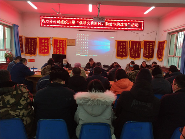 中國電力網(wǎng)訊 為貫徹落實(shí)習(xí)近平總書記關(guān)于厲行節(jié)約、反對(duì)浪費(fèi)特別是制止餐飲浪費(fèi)行為的重要指示精神。2月9日,新疆兵團(tuán)一師電力阿拉爾熱力分公司組織開展“倡導(dǎo)文明新風(fēng)、勤儉節(jié)約過節(jié)”活動(dòng)。