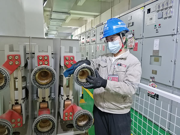 一線職工進(jìn)行9101開關(guān)衛(wèi)生清掃