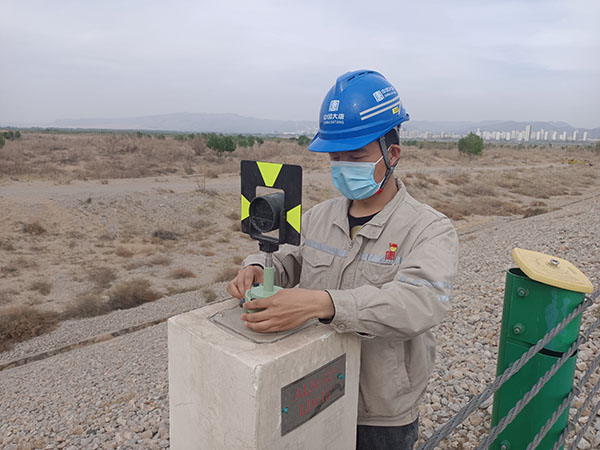 水工人員利用水準(zhǔn)儀進(jìn)行沉降測(cè)量