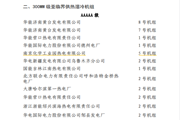 中國電力網(wǎng)訊 近日,中國電力企業(yè)聯(lián)合會公布2020年電力行業(yè)火電機組能效水平對標結(jié)果,南京化學工業(yè)園熱電有限公司(以下簡稱公司)#5機組再次榮獲2020年度全國火電300MW級亞臨界供熱濕冷機組能效水平對標競賽AAAAA級優(yōu)勝機組稱號,這已是公司連續(xù)五年獲此殊榮。